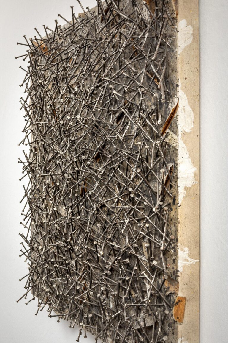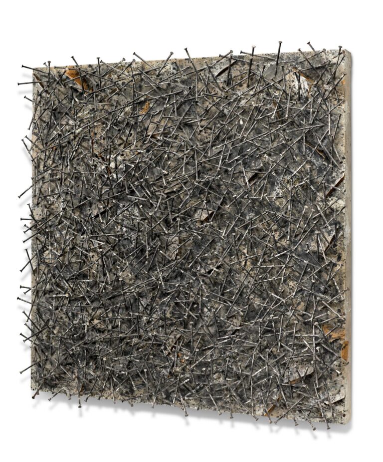Beginning in the 1950s, an extensive and complex group of works emerges, which in itself displays an enormous development: Günther Uecker’s iconic nail objects prove how intensively he deals with the rigid material and how virtuously he knows how to treat it.