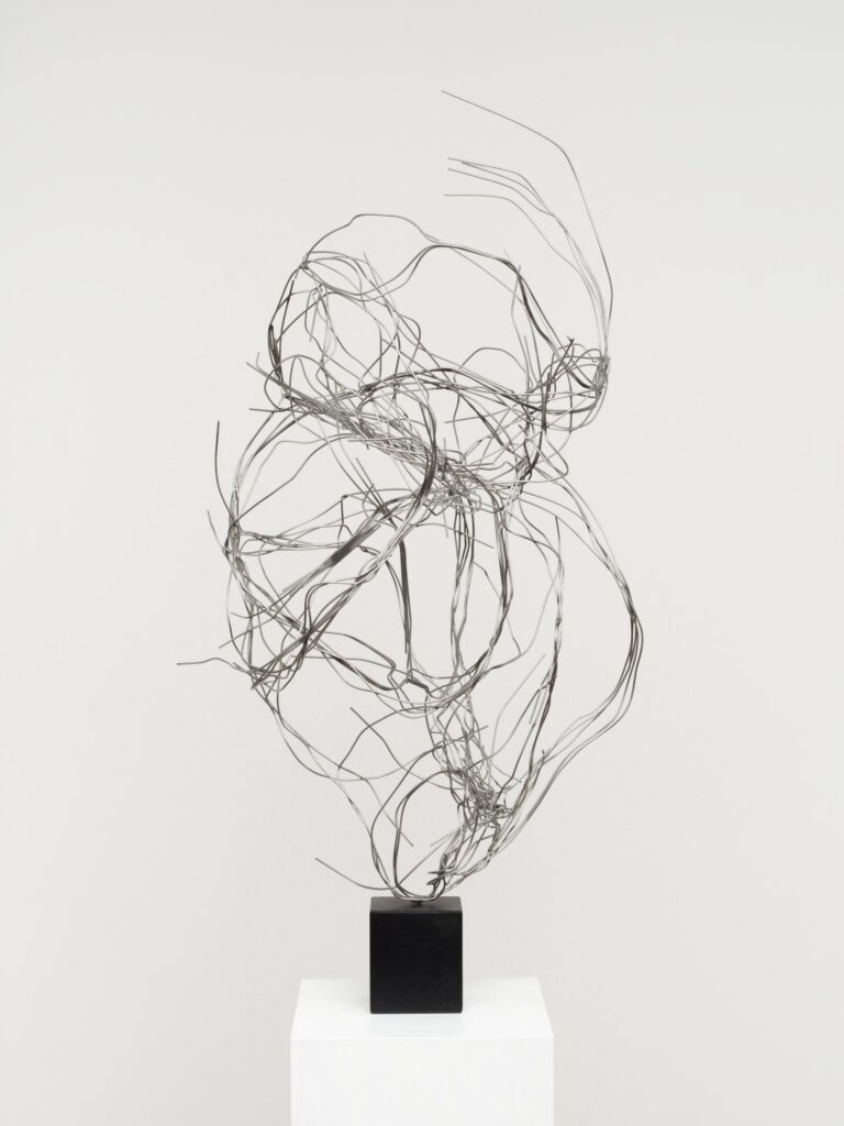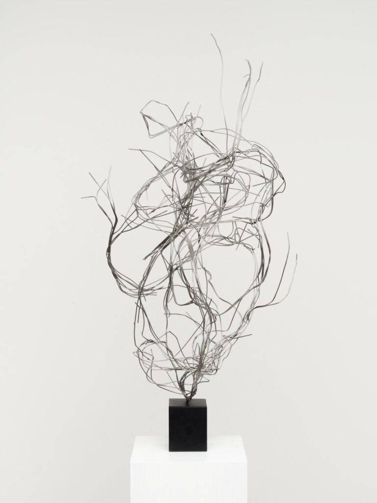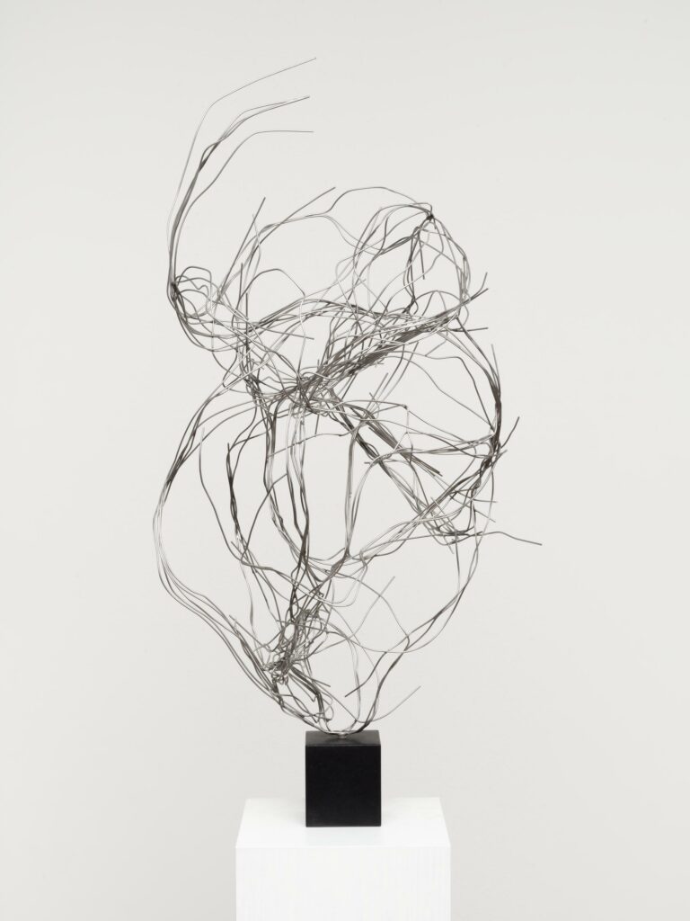 This is the most beautiful example of how Kricke succeeds in dynamizing not only space, but also our ways of seeing. His spatial sculptures do not place signs in space; instead, they leave traces behind that our eyes then follow. And it is precisely this ocular movement that simultaneously establishes a temporal experience. It is only in the pursuing gaze that follows the metal’s trail through space that one can appreciate its full dimension. And this necessity of a concurrent experience of space and time, first lived by the artist and then the viewer, substantiates the singular greatness of Kricke’s art.