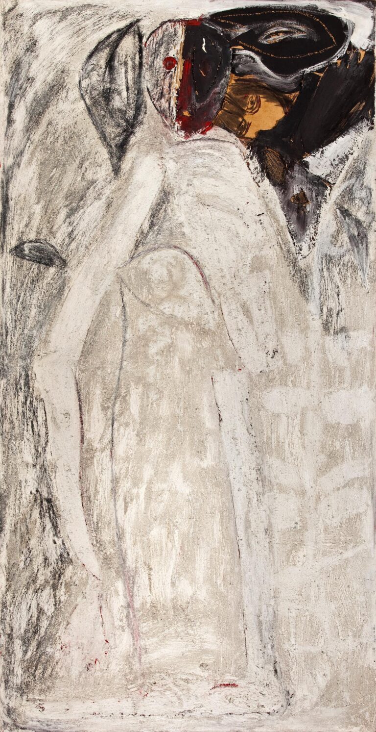 Personal experiences and current social issues also flow into his artworks. In our work, the space becomes the stage for an ambivalent expression: the figure appears simultaneously present and distant, the title asserts an active presence, while the depiction eludes the viewer.