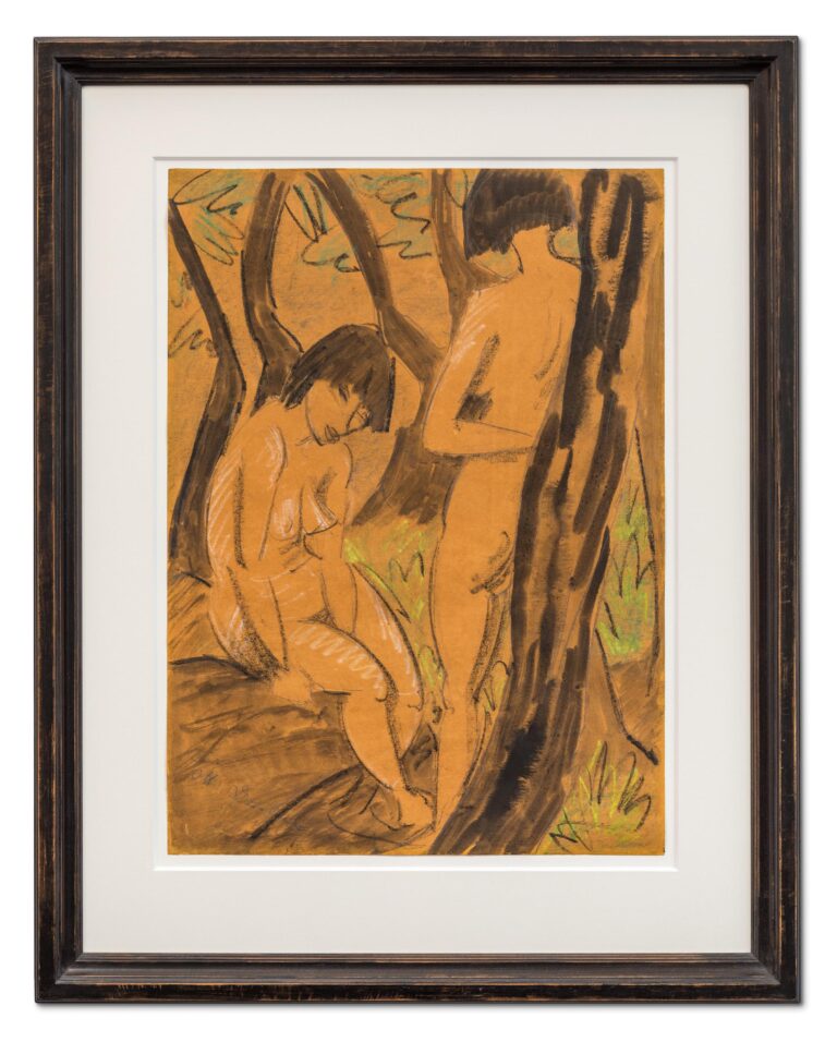 In Zwei Mädchen im Wald, Mueller’s characteristic ideal of a peaceful unity between human beings and nature becomes fully apparent. The work stands as a representative example of his contribution to German Expressionism and his enduring exploration of the nude within a natural setting.