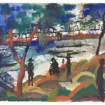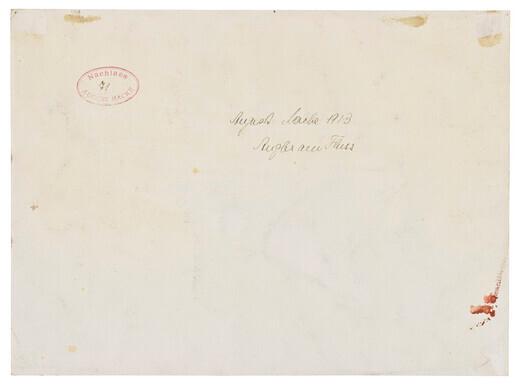Rückseitig mit dem ovalen Nachlassstempel Nachlass AUGUST MACKE versehen, darin handschriftlich nummeriert 71 und betitelt August Macke 1913 Angler am Fluss