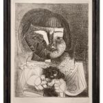 Der abstrahierte schwarze Hintergrund lenkt den Blick konzentriert auf das Geschehen im Vordergrund. Durch die bewusste Beschränkung auf Schwarz-Weiß-Kontraste erreicht Picasso eine grafische Klarheit, die emotional aufgeladen bleibt – ein Beweis für seine meisterhafte Kontrolle über Reduktion und Ausdruck. Die Lithographie ist nicht nur ein kunsthistorisch bedeutsames Porträtwerk, sondern auch ein persönliches Dokument väterlicher Zuneigung.